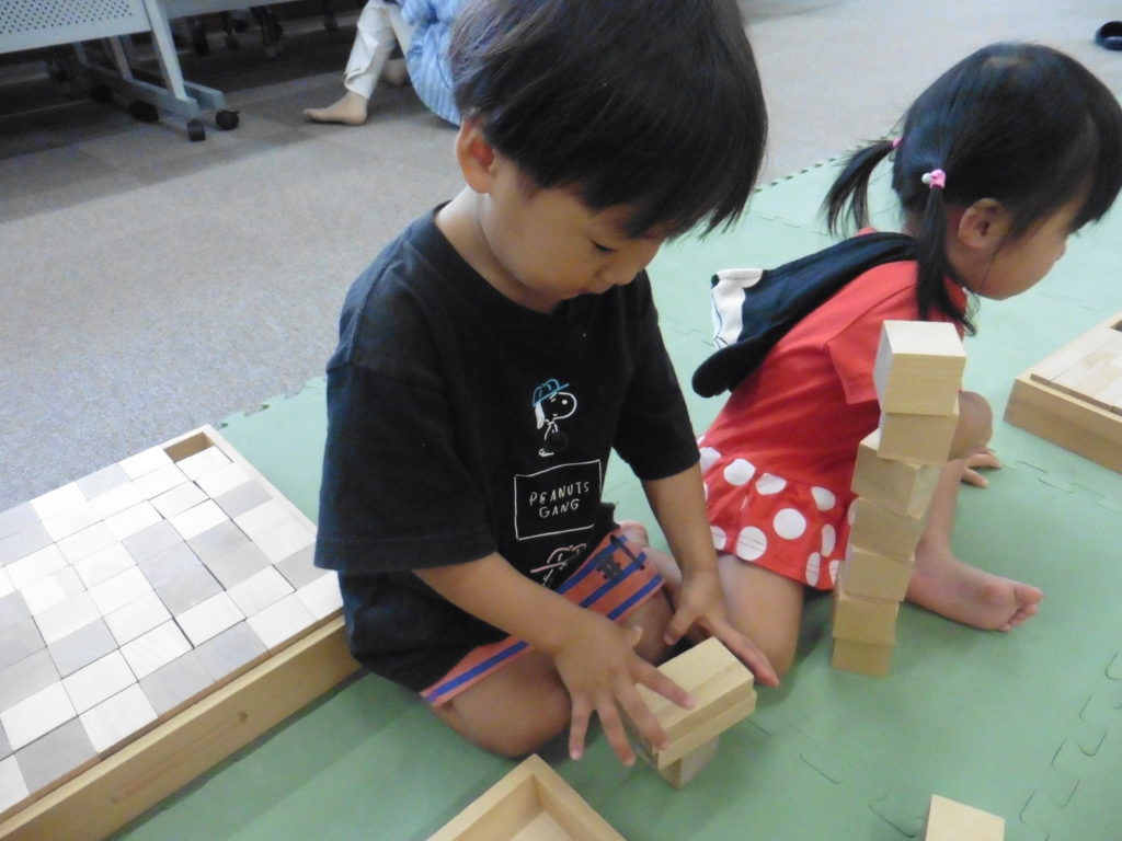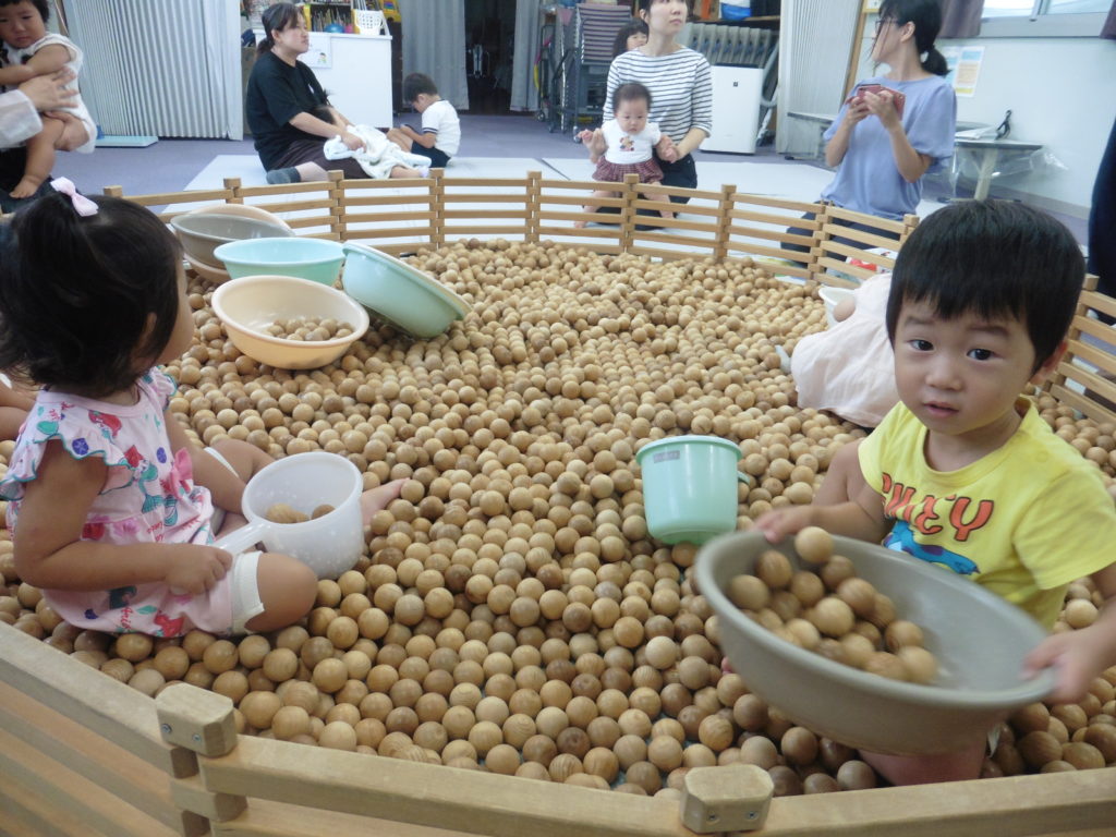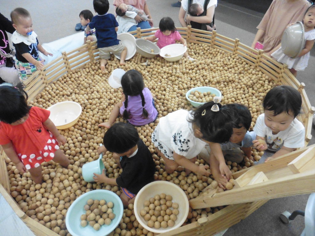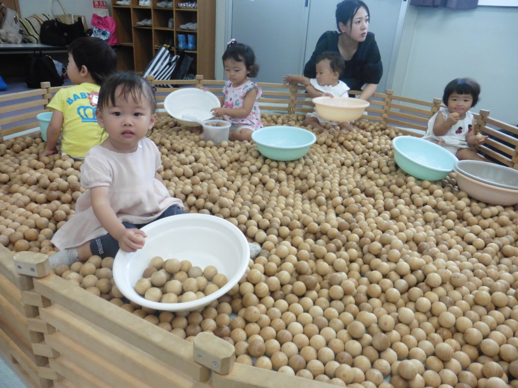 イクリアでは、木の玉プール、積み木を貸し出しています。